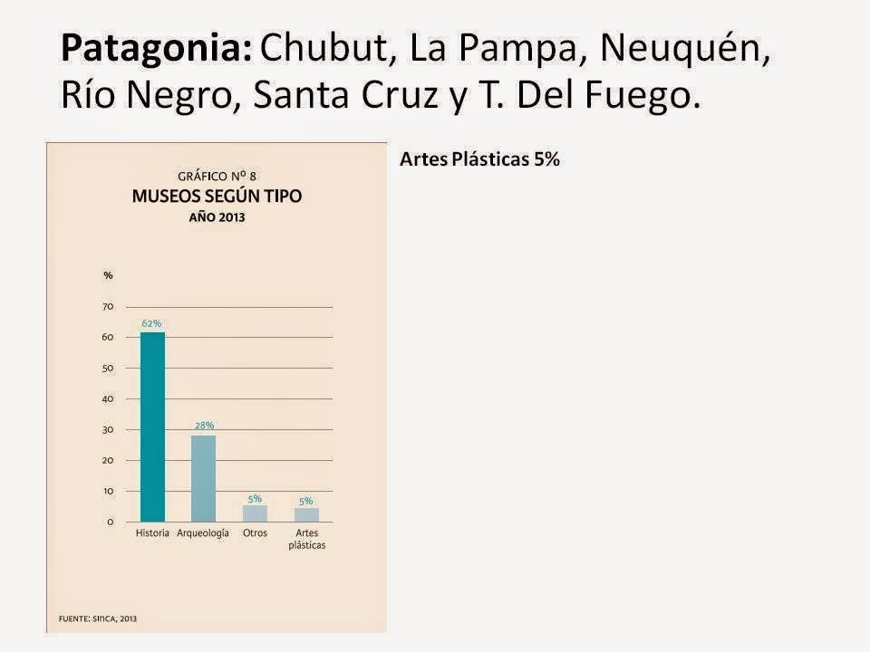 Un dato elocuente, es el porcentaje de museos de Artes plásticas y que evidencia la falta de opciones y su consecuente desinterés general por las artes plásticas en general.