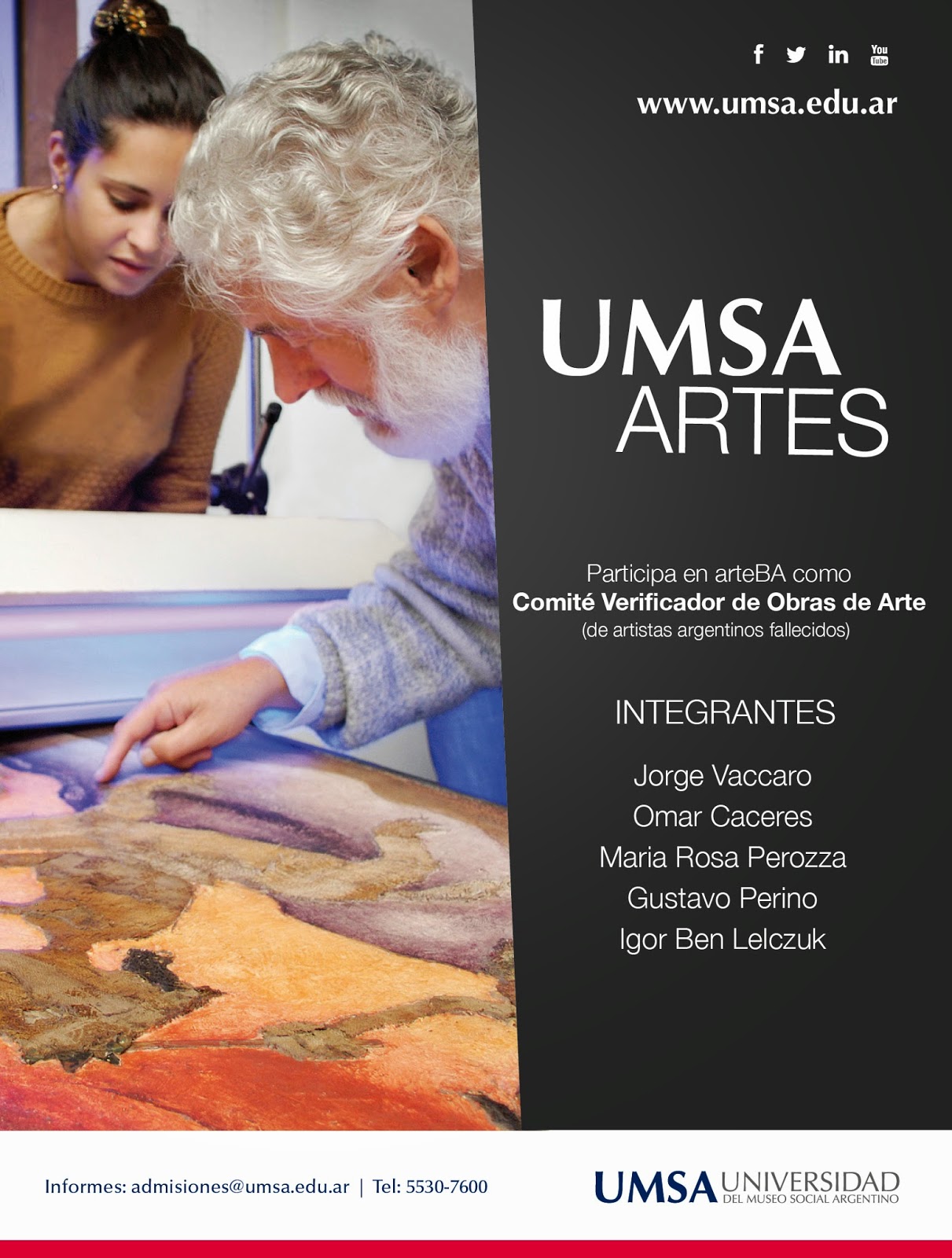 EXPERTIZAJE: Por primera vez en la historia de la carrera, un equipo de profesionales de la UMSA participará en ArteBA como parte del comité verificador de las obras de los artistas Argentinos ya fallecidos.