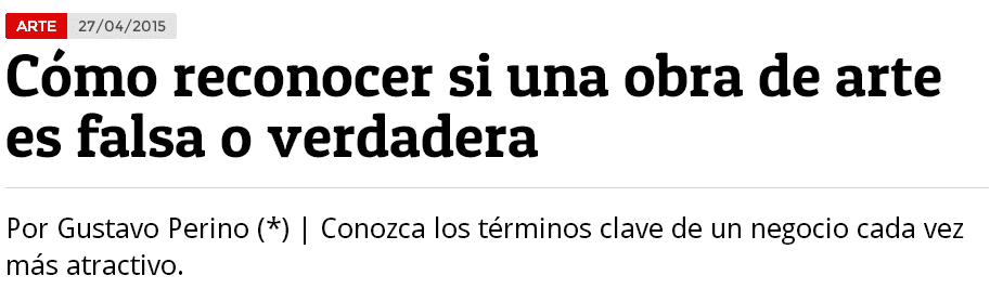 La revista especializada en mercado de editorial Perfil. Publico una nota realizada por el Lic. Perino sobre "cómo reconocer si una obra es falsa o verdadera" titulo que da el puntapié inicial para poder a través de este medio ir informando al público en general sobre la tarea del perito y la importancia del mismo en el mercado de arte como contralor y fiscal, protegiendo la identidad de la obra por sobre todas las cosas.