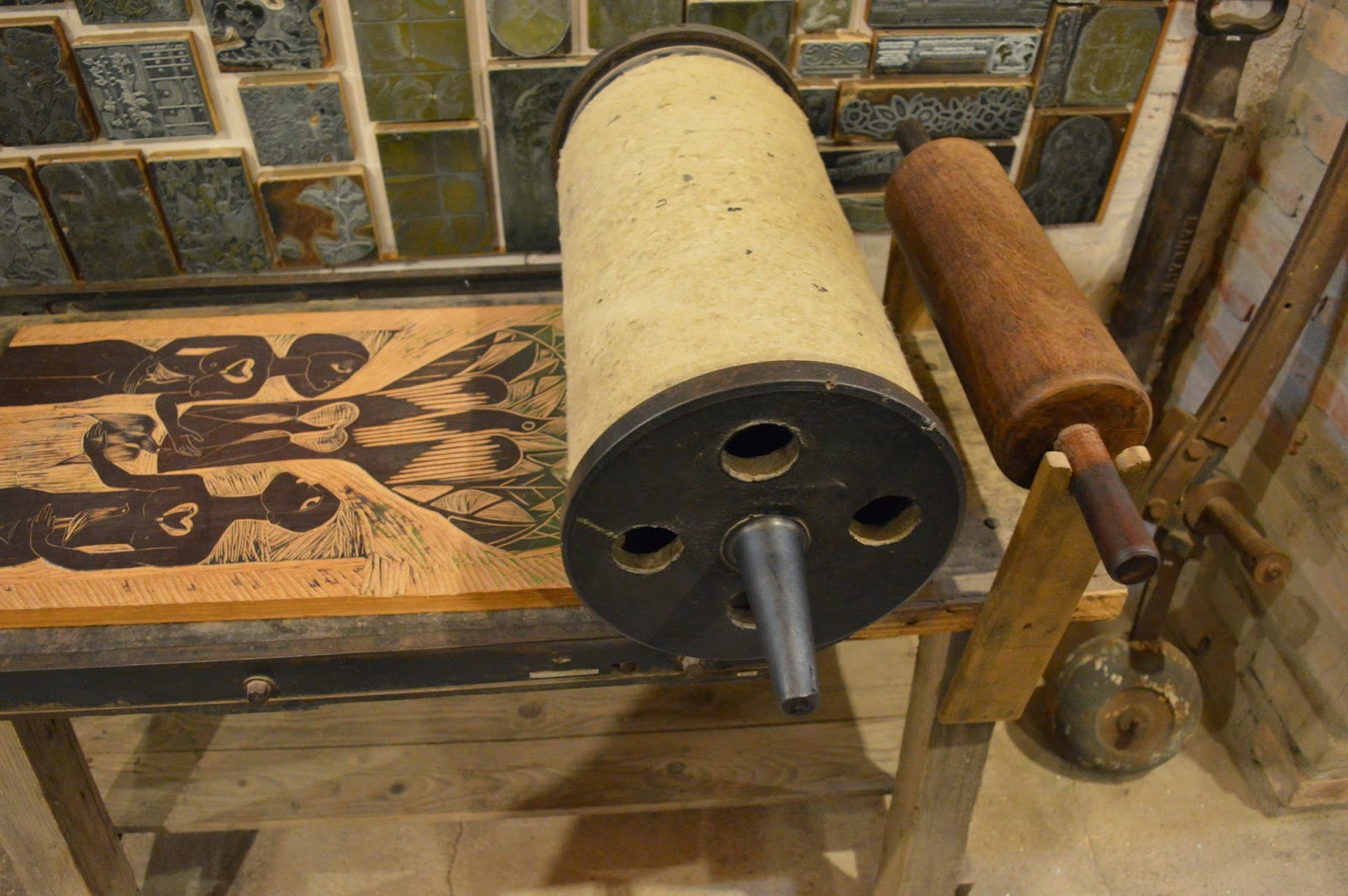 4.- aplicar la tinta, que es grasa, con un rodillo sobre lapiedra. La tinta no se adhiere sobre el resto ya que el principio en que sebasa esta técnica es la incompatibilidad entre el agua y la grasa.
