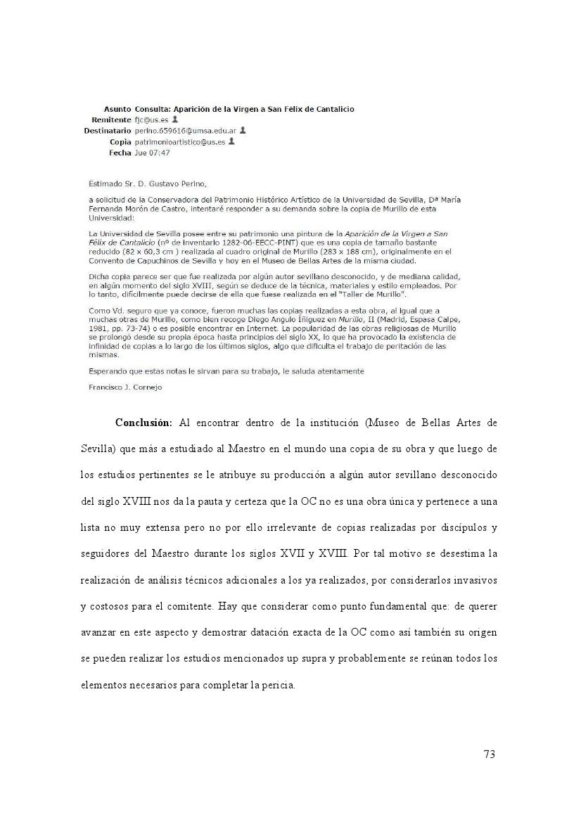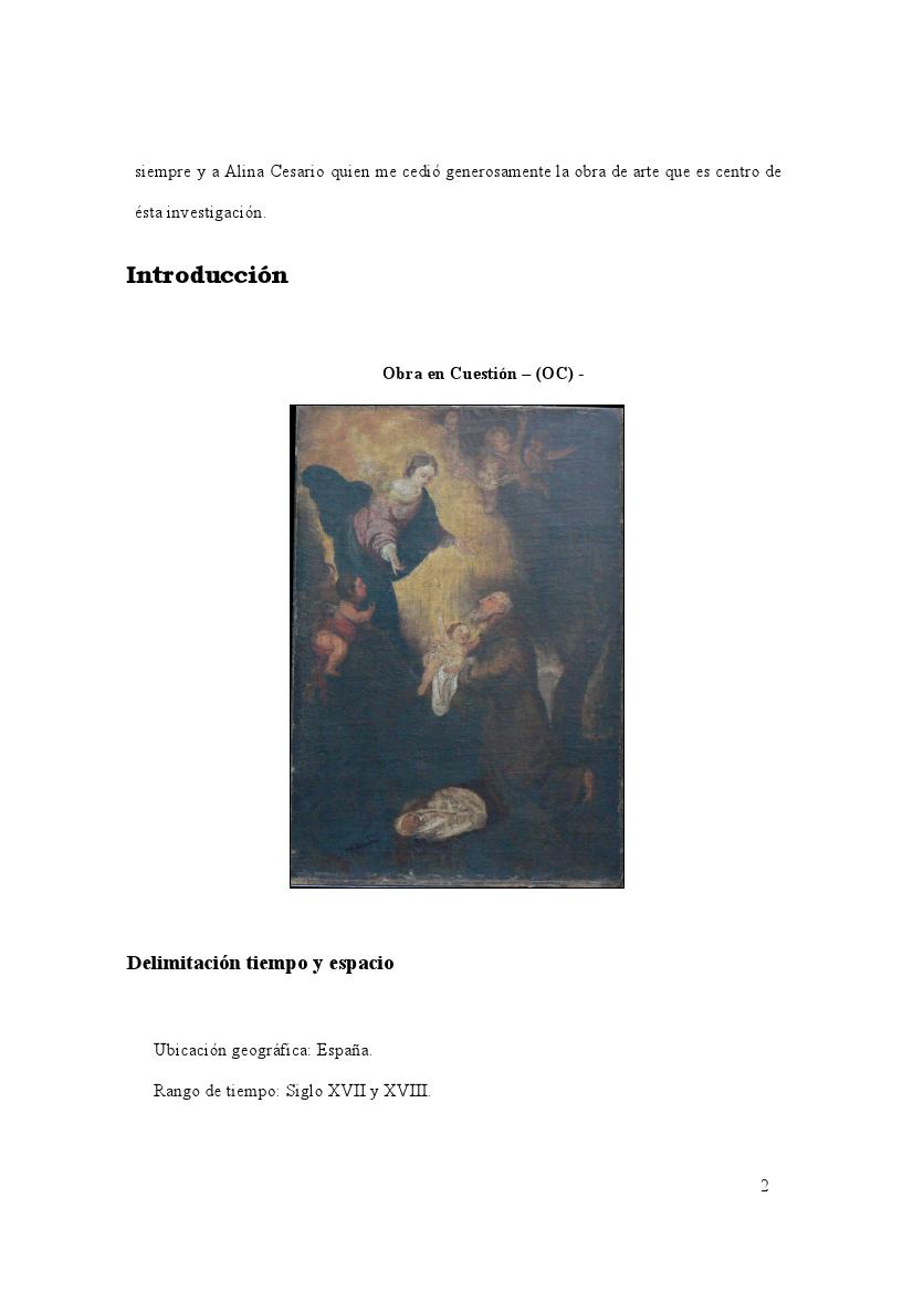 Todas las imágenes son extraídas de la Tesis original (Gustavo Perino_Trabajo final de grado -114 páginas -2012) y han sido omitidos capítulos y anexos que completan la investigación. El objetivo es compartir un trabajo de investigación sobre una obra de Arte, en este caso una homónima de Bartolomé Esteban Murillo. Bien puede realizarse con cualquier tipo de obra, ya sea anónima o con conocimientos de su autoría. Este es reflejo de los principales trabajos y competencias que tiene un Perito y Valuador de Obras de Arte.
