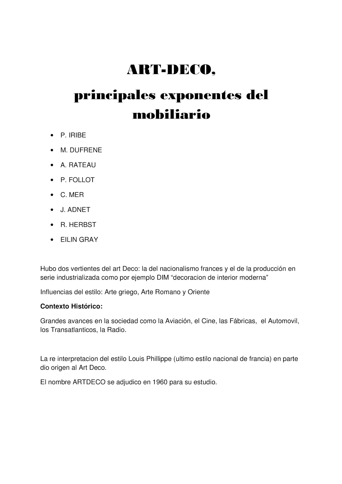 IMPORTANTE: Les comparto un "compendio" de mobiliario ArtDecó; sobre cada renglón, hay libros escritos pero quiero acercarles un "pantallazo" sobre este maravilloso estilo y motivarlos a que busquen más información. El Mobiliario es un área de estudio maravillosa.